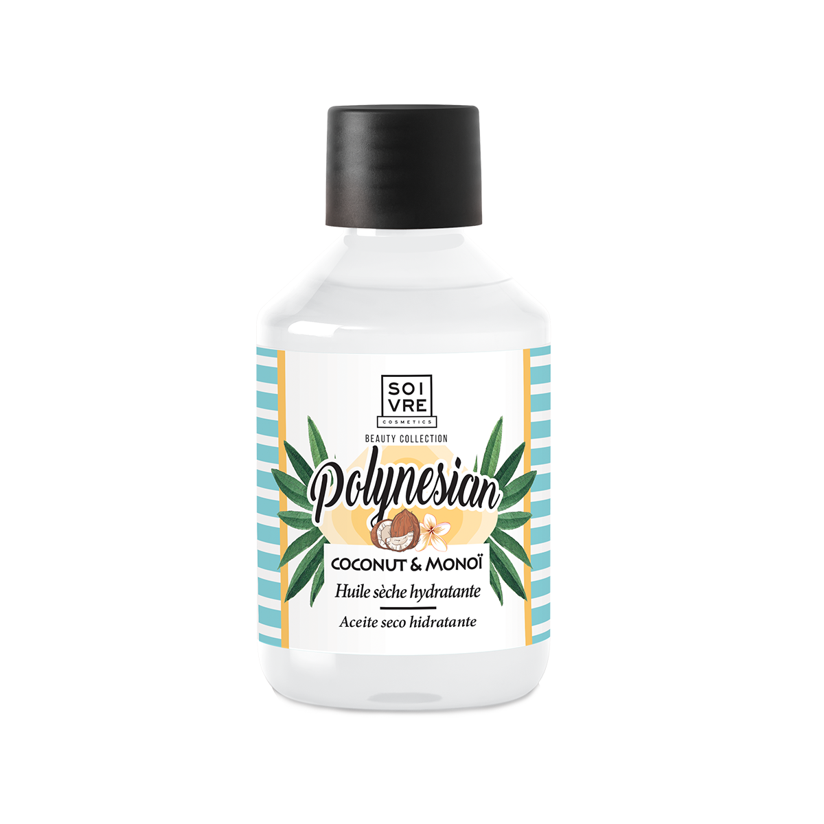 Aceite seco hidratante de textura ligera formulado con Monoï de Tahití de calidad Ecocert y aceite de coco. Propiedades nutritivas e hidratantes que reparan y protegen la piel. Enriquecido con Aceite de Coco, rico en ácidos grasos y Vitamina E, nutren en profundidad y regeneran la piel.