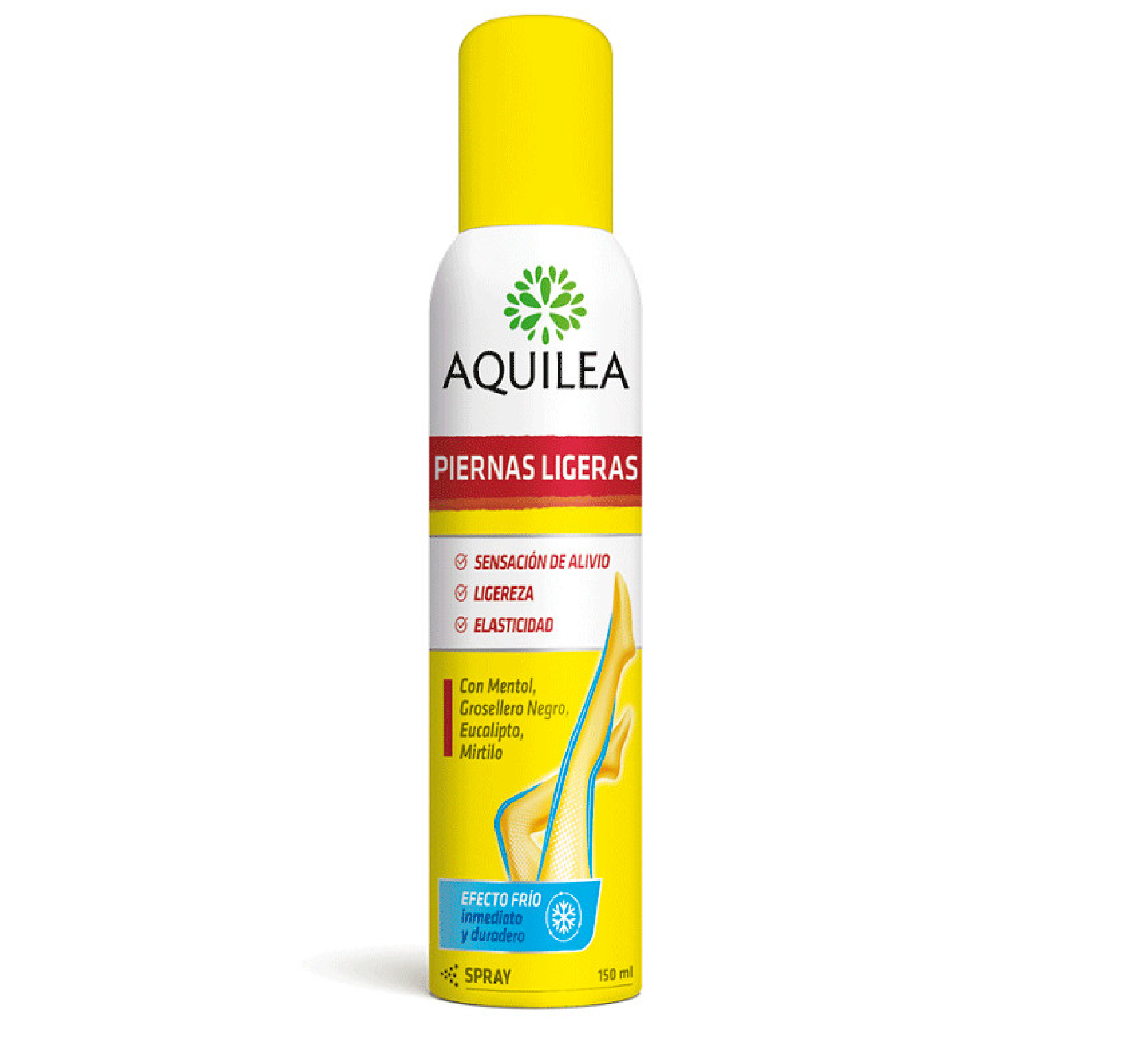Aquilea Piernas Ligeras Spray proporciona un efecto frío inmediato y duradero que refresca, revitaliza y aporta ligereza y elasticidad a las piernas. Además, también tonifica la piel.