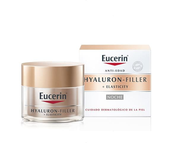 Eucerin Hyaluron-Filler + Elasticity Noche es una crema de noche antiedad que rellena las arrugas profundas y mejora la elasticidad de la piel.