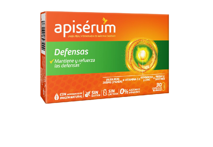 Apiserum Defensas es un complemento alimenticio con jalea real de la máxima calidad (2% HDA), vitamina C, zinc equiunácea, reishi y shitake para una máxima eficacia. Su exclusiva fórmula con ingredientes de origen natural ayuda al sistema inmunitario y a mantener el ritmo de vida con energía.